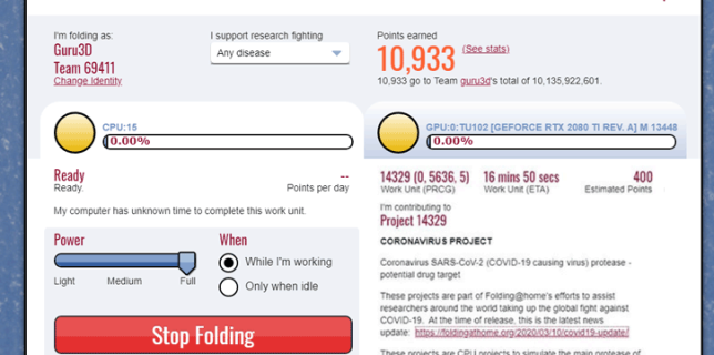 Har du en PC og litt strøm til overs i kampen mot korona? «Folding@home» (f@h) er et system hvor blant annet forskning på corona kan bruke DIN pc til å lage simuleringer som hjelper til å forstå viruset – og Continue reading Slik kan DU hjelpe til å lage en vaksine mot korona!
